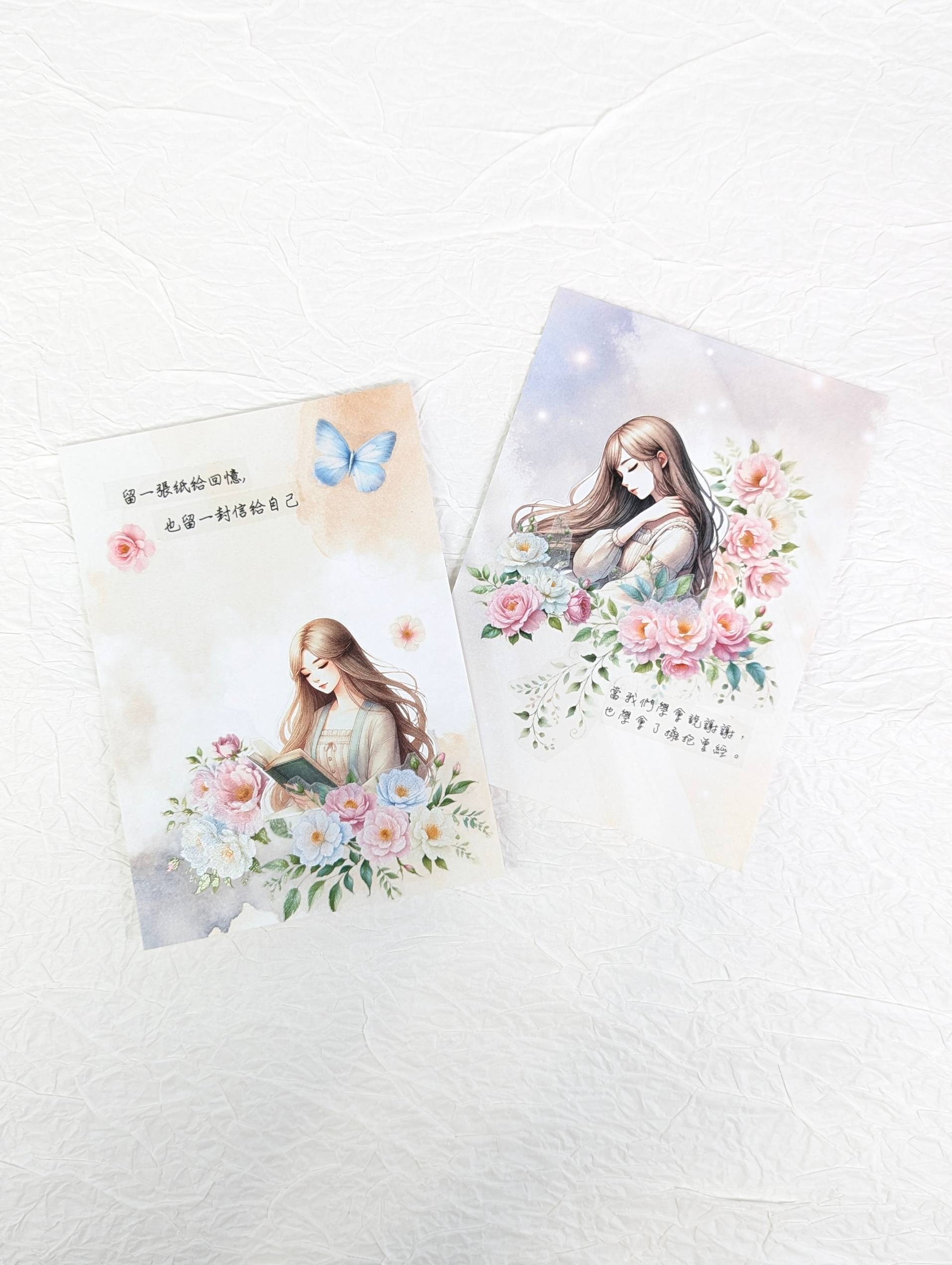 有些話,不需要大聲說,也不需要被回答, 它們只想在你靜靜坐下、倒一杯茶時,被好好地聽見。 本月主題靈感-私語茶會 這是一場只為自己舉辦的茶會。 為那些來得慢、說得輕、不適合在人群裡被提起的感受,準備一張椅子。 你不必懂它、不必定義它,只要讓它在圖像與紙張之間,有一點空白可以停留、緩緩被看見 你可以試著從這些方向開始: 拼貼一場屬於自己的靜心茶會:選擇紫羅蘭、淡灰藍、柔霧白等色調的拼貼元素,搭配茶具、花朵、紙張、窗影等圖案,為感受預留一張椅子、一壺茶的時間。 挑一個貼近此刻情緒的小物件:也許是一張椅子、一杯茶、一本書、一朵你今天特別注意到的花,將它拼貼在角落,作為今天內在心情的象徵。 寫下一行沒說出口的心聲:用一句安靜的語錄、心裡浮現的短句,或幾個能代表你的情緒的詞,貼在紙上,讓語言陪著圖像慢慢被看見。 拼貼一場屬於自己的靜心茶會:選擇紫羅蘭、淡灰藍、柔霧白等色調的拼貼元素,搭配茶具、花朵、紙張、窗影等圖案,為感受預留一張椅子、一壺茶的時間。 這次的主題素材是: 兩張信紙感的主題底紙(A5,可對半裁切為A6) 三個提問,幫助你慢慢寫下心裡的話...